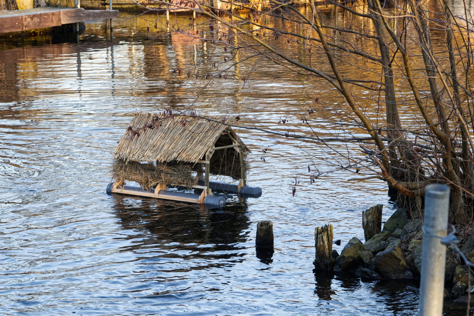 A floating nesting structure designed for water-nesting birds such as great crested grebes and coots. The project began with field observations at Tiefwerder, where unstable and unsuitable nesting solutions were identified .